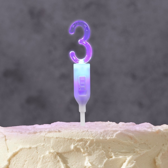 Светодиодная свеча "Цифра 3", 14.5 см, от батареек LR1130х3 (в комплекте), свечение мульти (RGB)