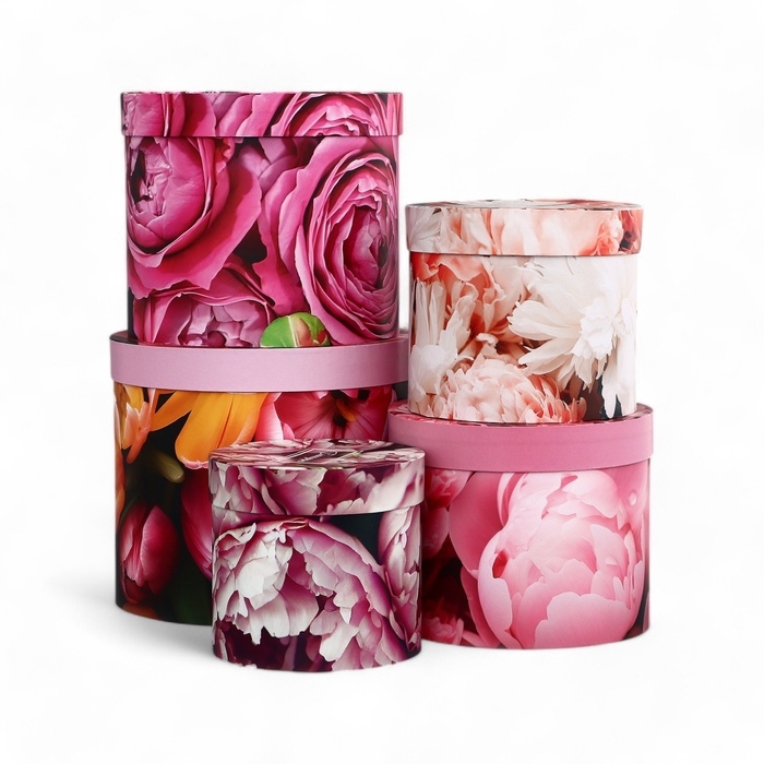 Набор шляпных коробок для цветов 5 в 1, упаковка подарочная, «Для тебя», 16 х 14 см - 22 х 19,5 см
