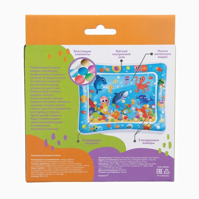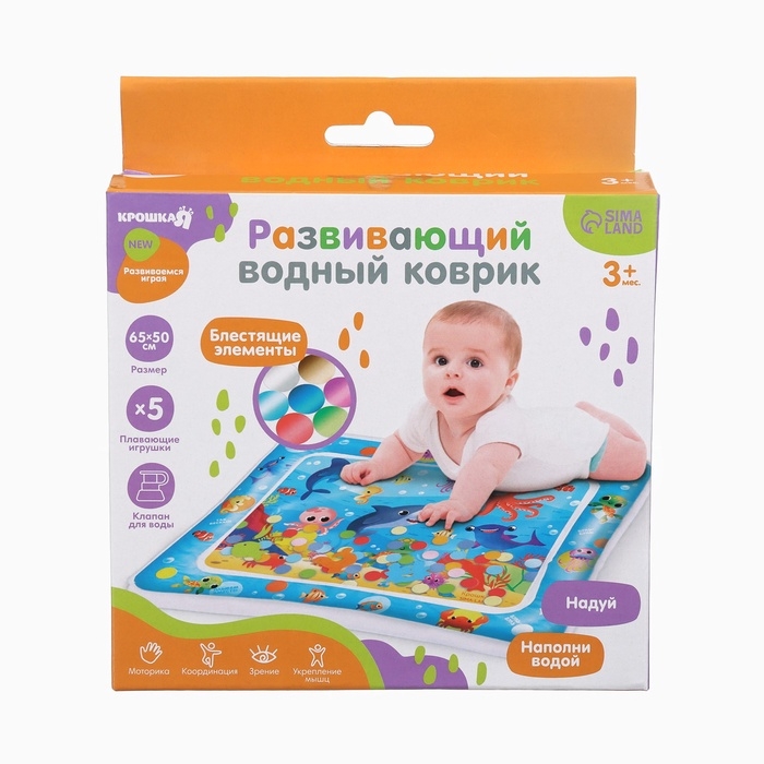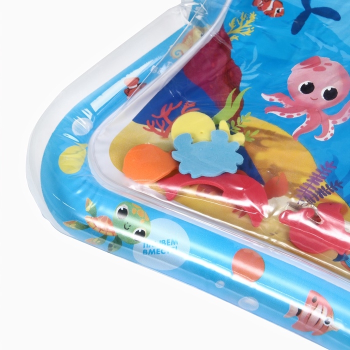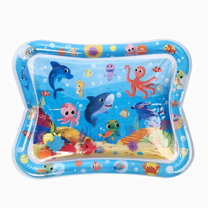 Акваковрик надувной развивающий водный «Морские жители», 65x50 см + игрушка В ПОДАРОК