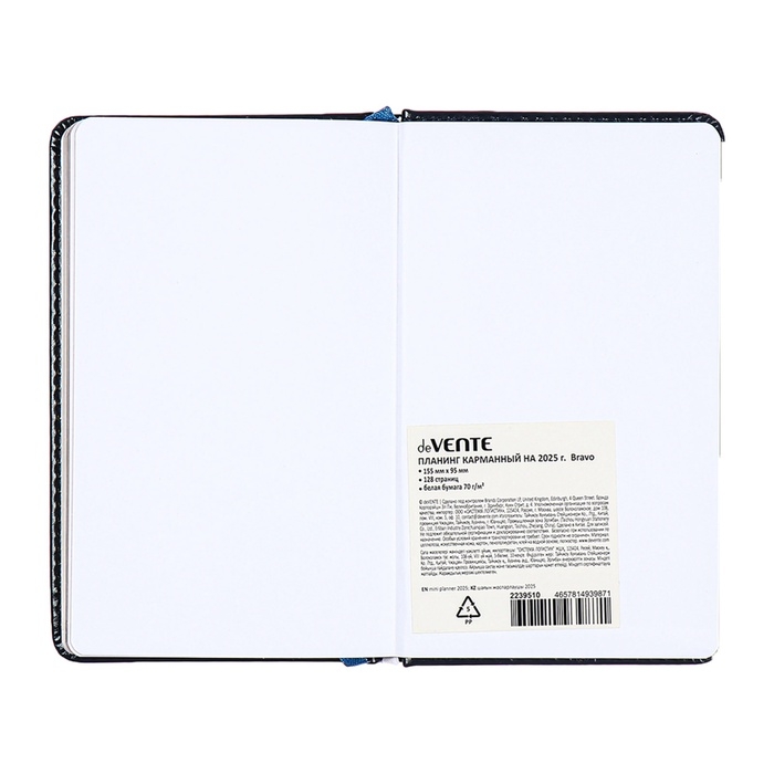 Планинг карманный датированный 2025 года, 64 листа, deVENTE.Bravo, твердая обложка кожзам с поролоном, термо тиснение, блок 70 г/м2, синий, 155 х 95мм