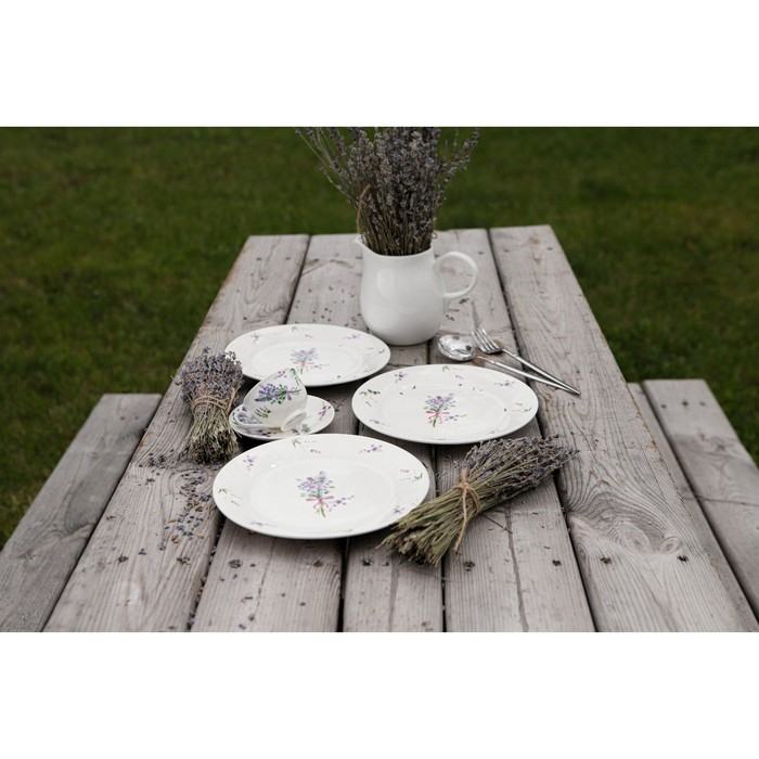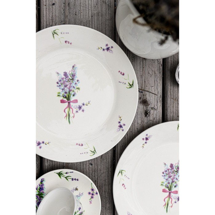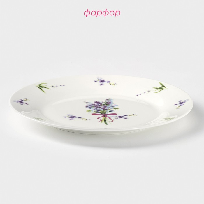 Тарелка фарфоровая обеденная Доляна «Лаванда», d=25.3 см, цвет белый