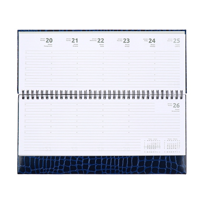 Планинг датированный 2025 года, Attomex. Arkona, 64 листа, твердая обложка бумвинил с поролоном, блок 70 г/м2, синий, 294 х 142мм
