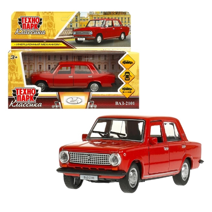 Машинка металлическая «ВАЗ-2101», ретро - модель «Копейка», открываются двери, багажник, инерция, 12 см, красный