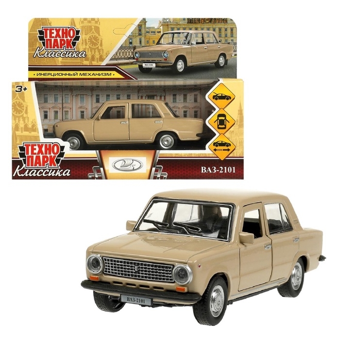 Машинка металлическая «ВАЗ-2101», ретро - модель «Копейка», открываются двери, багажник, инерция, 12 см, бежевый
