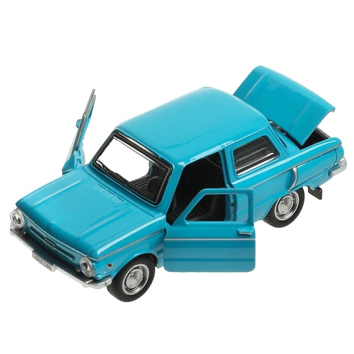 Машинка металлическая «ЗАЗ-968А», ретро - модель «Запорожец», открываются двери, багажник, инерция, 12 см голубой