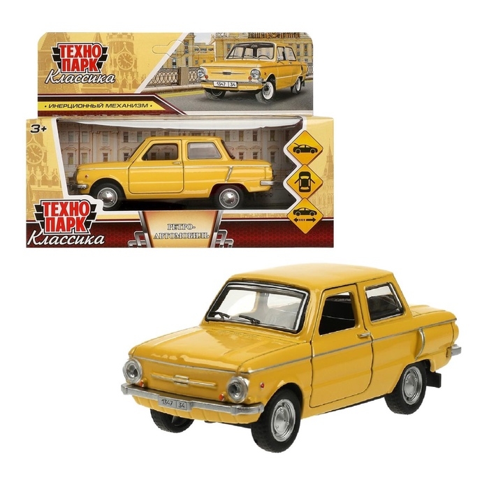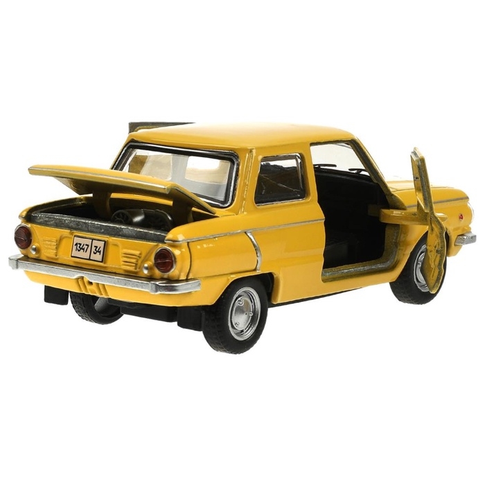 Машинка металлическая «ЗАЗ-968А», ретро - модель «Запорожец», открываются двери, багажник, инерция, 12 см желтый