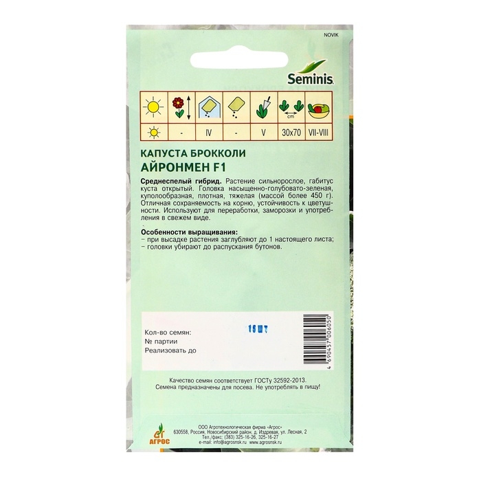 Семена Брокколи"Айронмен"F1 15шт* Seminis