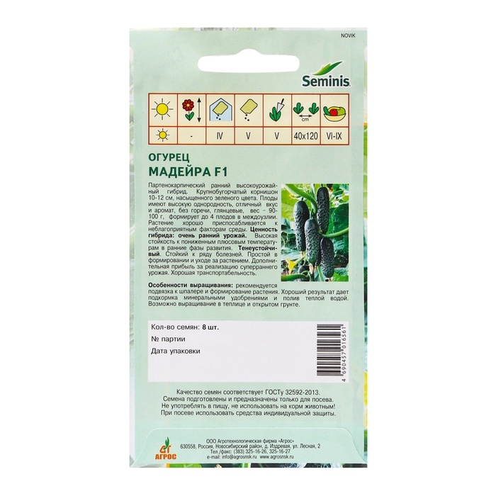 Семена Огурец"Мадейра"F1 8шт* Seminis