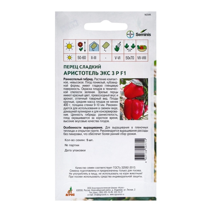 Семена Перец"Аристотель ЭКС 3 Р"F1 5шт ЭКОНОМ