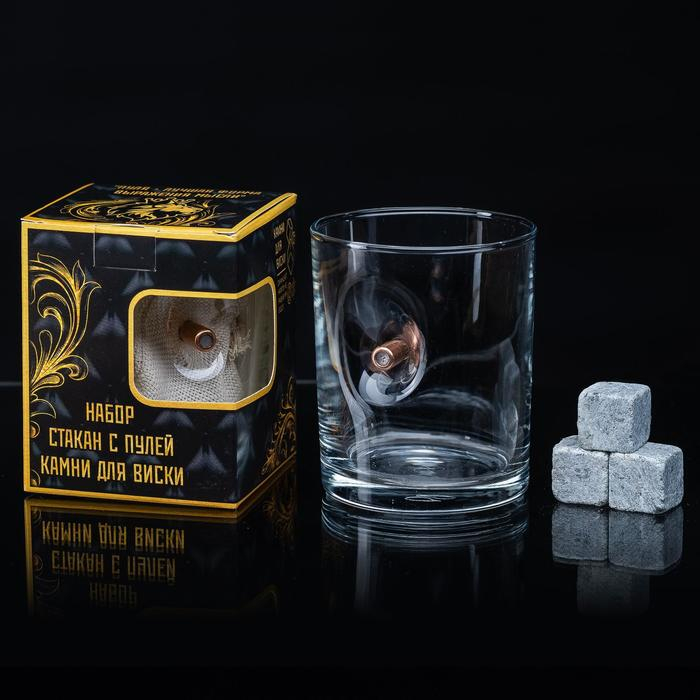 Набор стакан и камни для виски "Военный", с пулей, 3 камня в мешочке, 250 мл