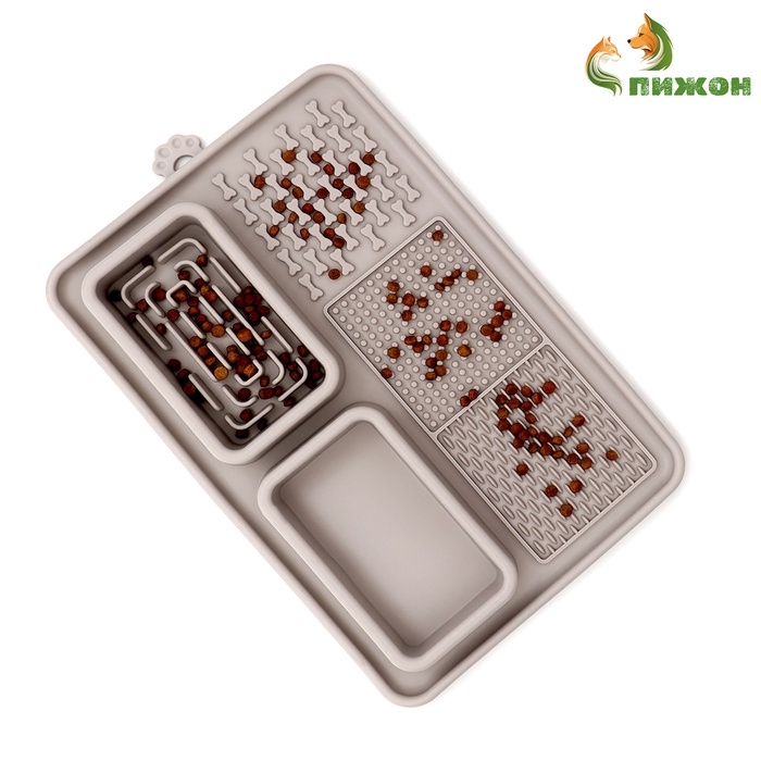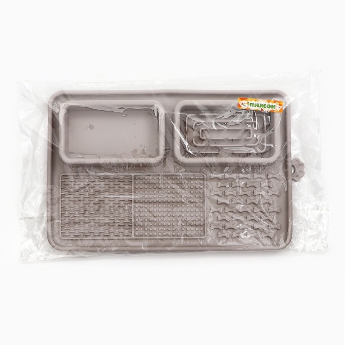 Коврик для лизания на присосках с мисками 30 х 20 см, серый