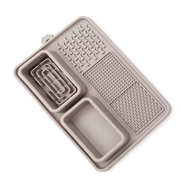 Коврик для лизания на присосках с мисками (30 x 20 см, серый) – это отличный аксессуар для ваших четвероногих друзей, который не только развлечет, но и поможет поддерживать их здоровье. Коврик станет идеальным решением для собачьих занятий, позволяя животным спокойно и приятно провести время, облизывая лакомства.