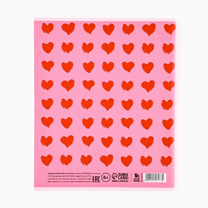Тетрадь А5, 96 листов на скрепке, внутренний блок №1 «Сердечки» уф лак