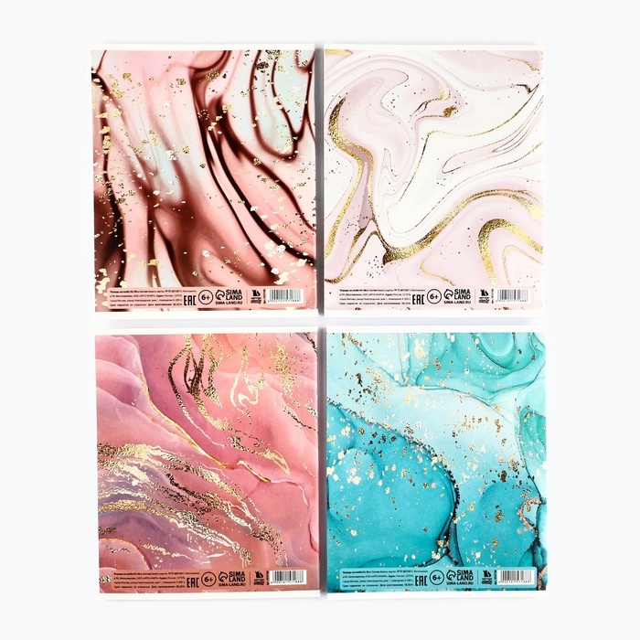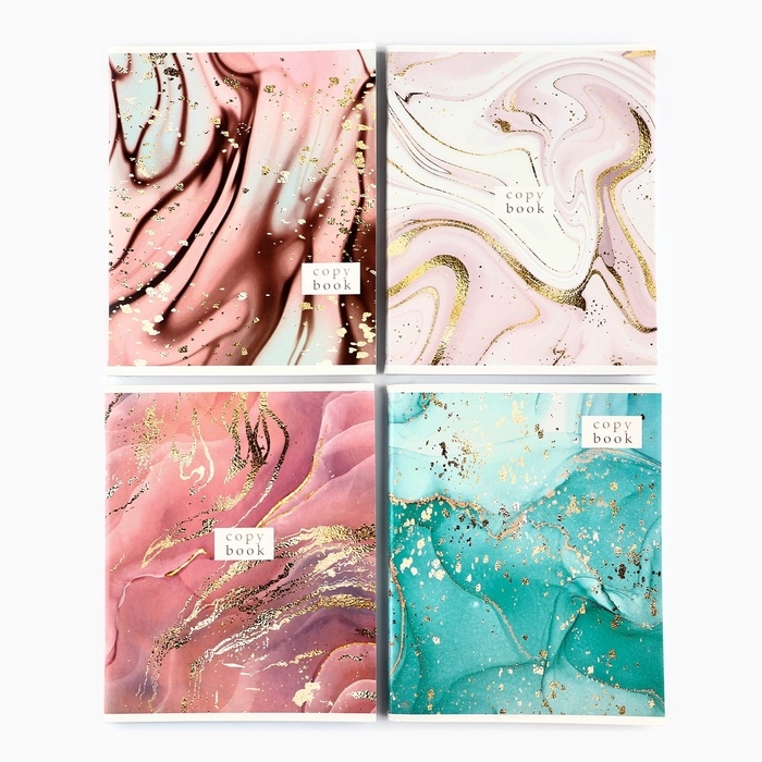 Тетрадь А5, 96 л на скрепке, 4 шт «Мрамор» МИКС