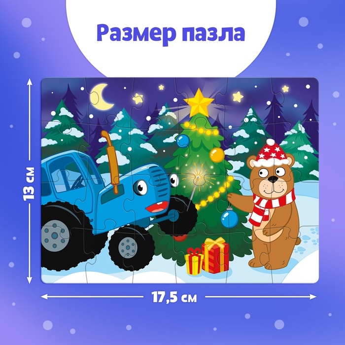 Пазл в термостакане «С Новым Годом», 24 элемента, 250 мл, Синий трактор