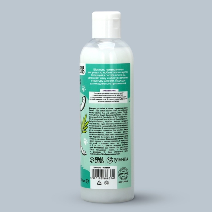 Шампунь для собак и кошек с ароматом кокоса, 250 мл