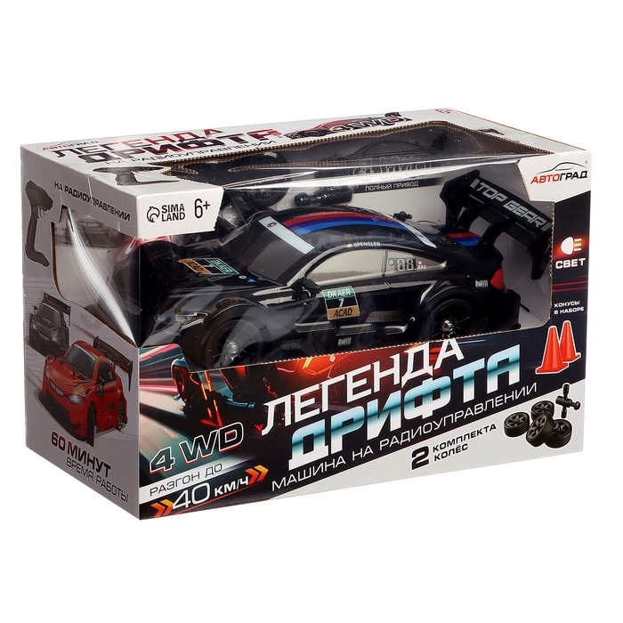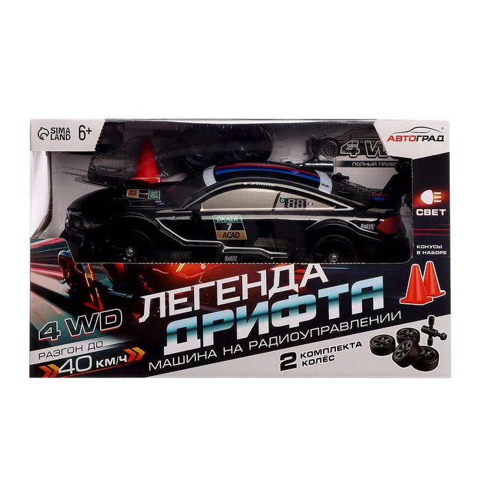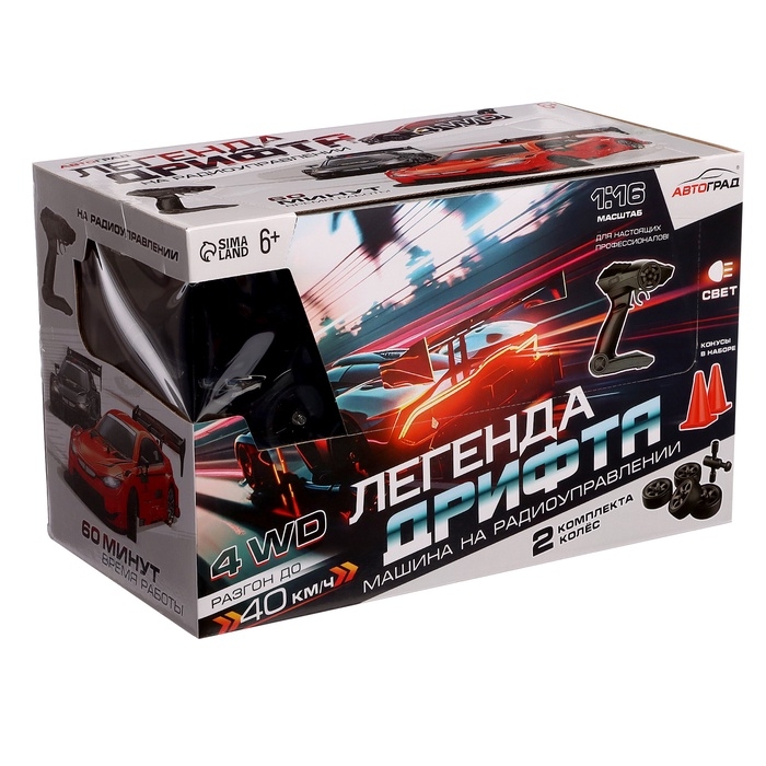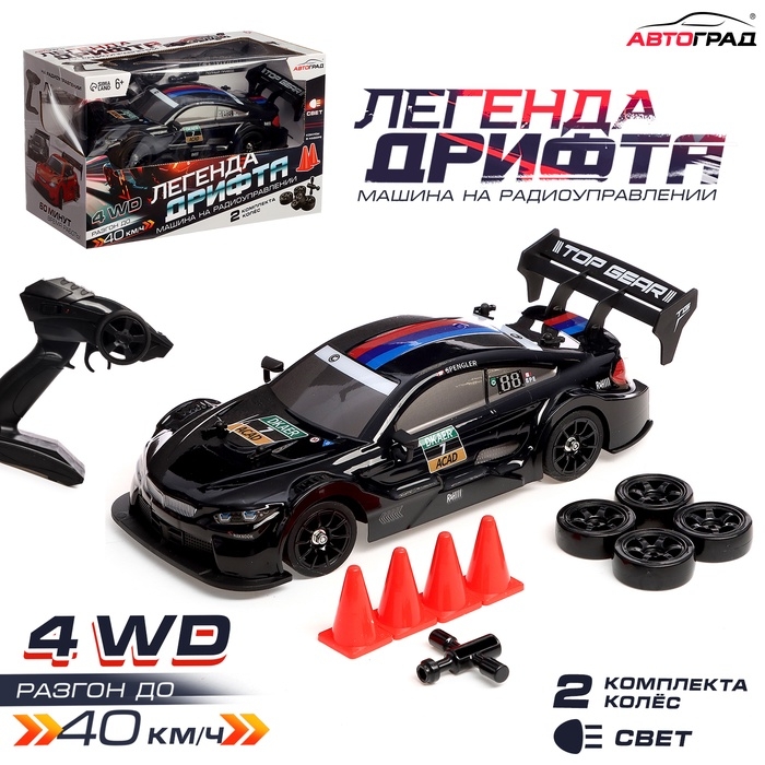 Машинка на пульте управления «Легенда Дрифта», радиоуправление, полный привод, 40 км/ч, 2 комплекта колёс, 1:16, цвет чёрный