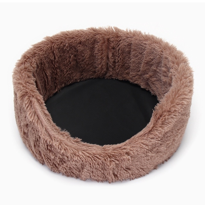 Лежанка для собак и кошек, длинный мех, 80 х 80 х 25 см, коричневая