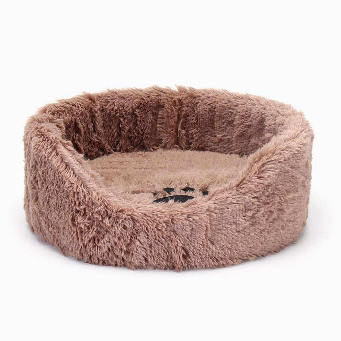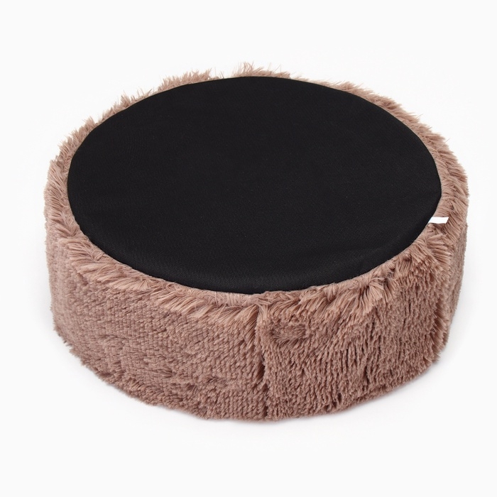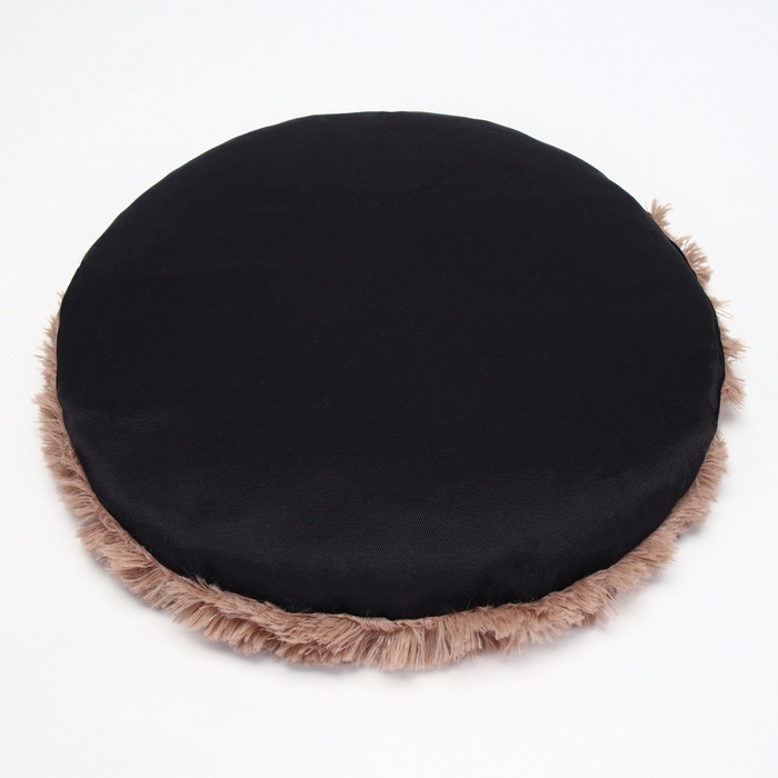 Лежанка для животных, с подушкой, мех, сатин, периотек, 40 х 40 х 16 см, коричневая