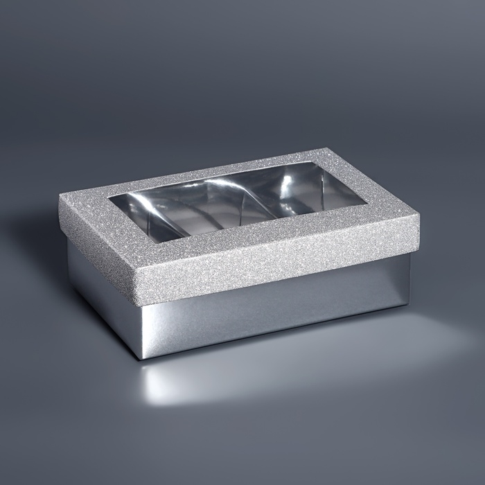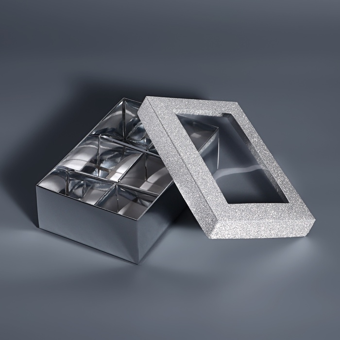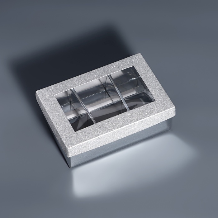 Коробка для 6 конфет серебро глиттер, 12 х 8,5 х 4 см. Кондитерская упаковка