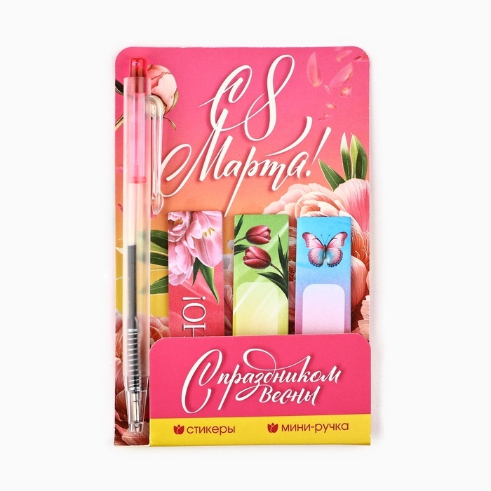 Набор "С 8 Марта", мини ручка и стикеры-закладки 20 л