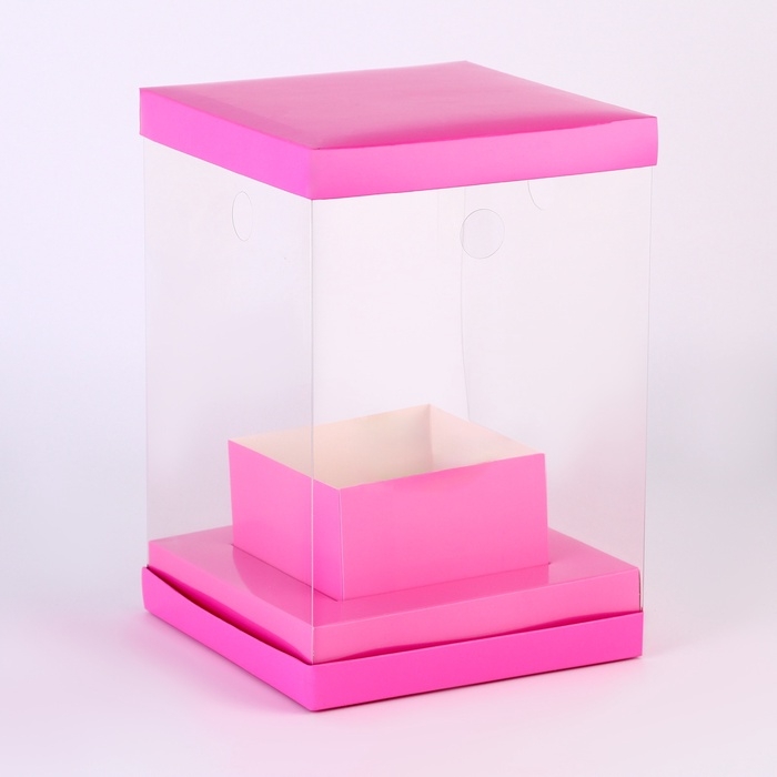 Коробка для цветов с вазой и PVC окнами складная, 16 х 23 х 16 см, однотонный, розовый