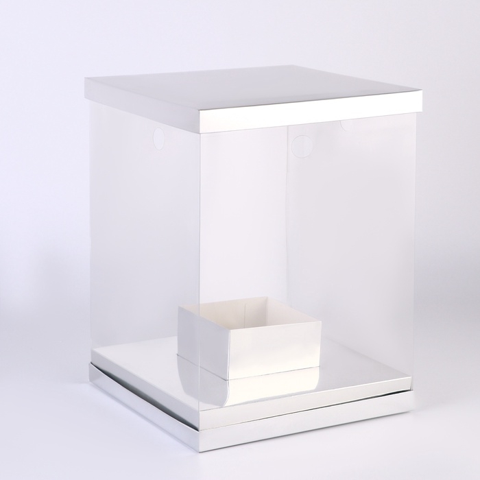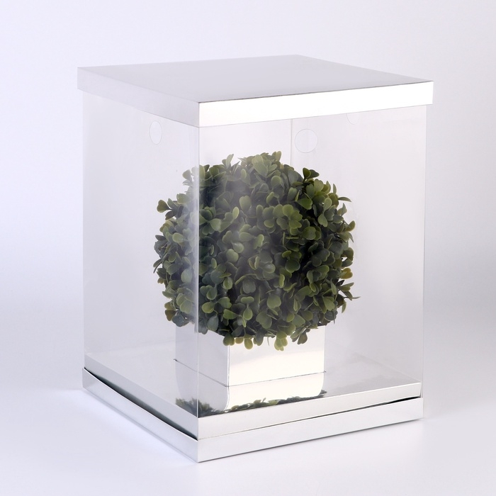 Коробка для цветов с вазой и PVC окнами складная, 23 х 30 х 23 см, серебро