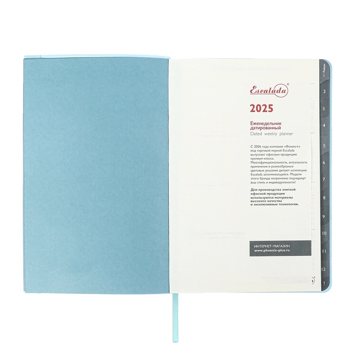 Еженедельник датир 2025г мягк обл иск кож А5 80л ESCALADA, бл тис, кр бл 70 г/м², синий