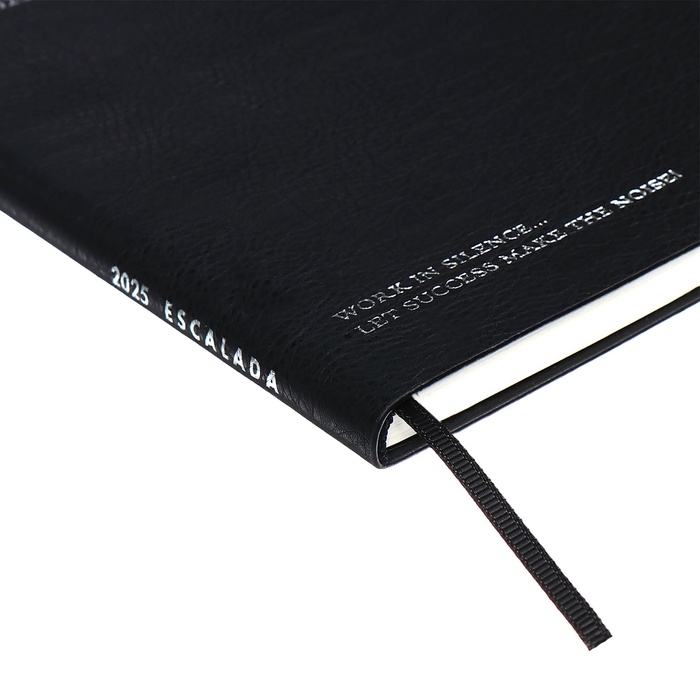 Еженедельник датир 2025г мягк обл иск кож А6+ 80л ESCALADA, тис ф, кр бл 70 г/м², чёрный