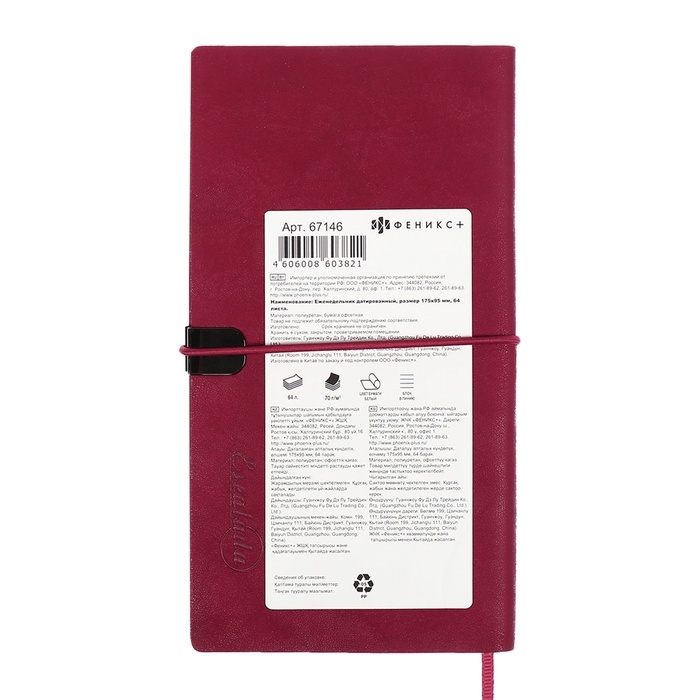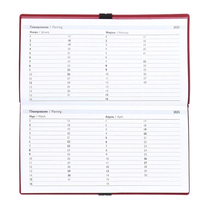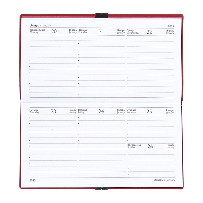 Еженедельник датир 2025г 175х95мм мягк обл иск кож 64л ESCALADA, бл тис, бл 70 г/м²,красный