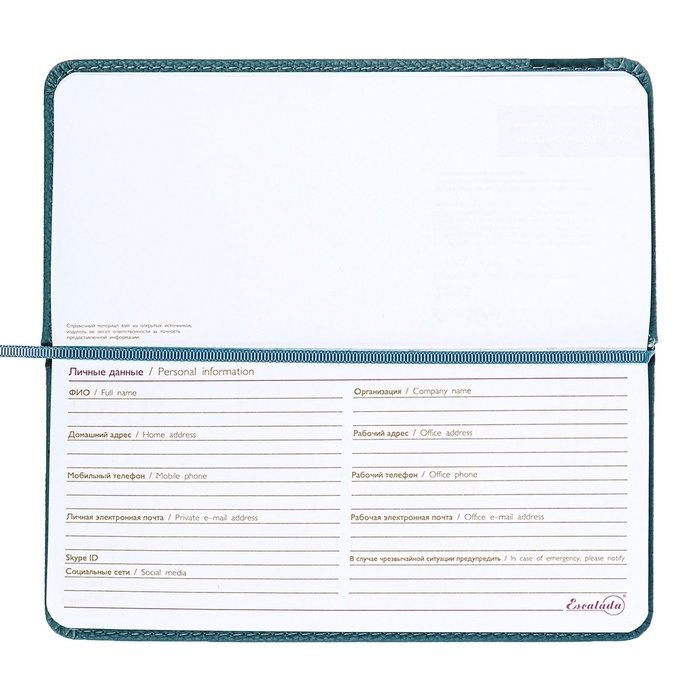 Еженедельник датир 2025г 170х88мм тв обл/пор иск кож 64л ESCALADA,бл тис,бл 70, синий