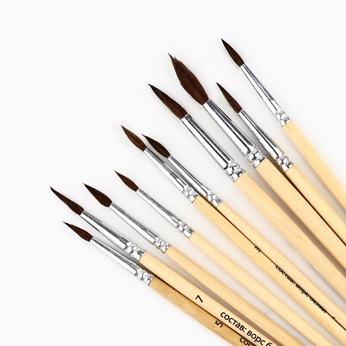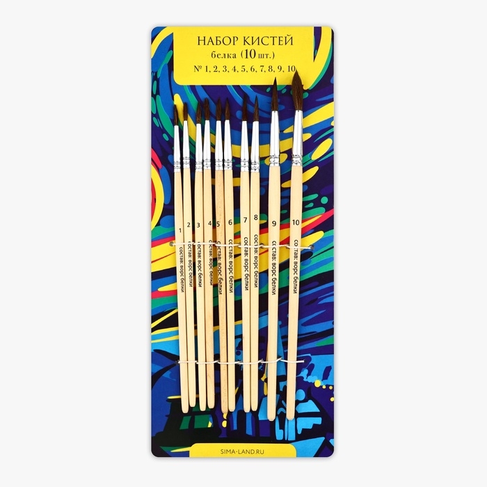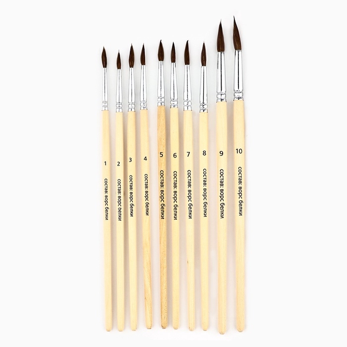 Кисть для рисования, набор белка круглые, 10 шт. № 1,2,3,4,5,6,7,8,9,10 «Ван Гог»