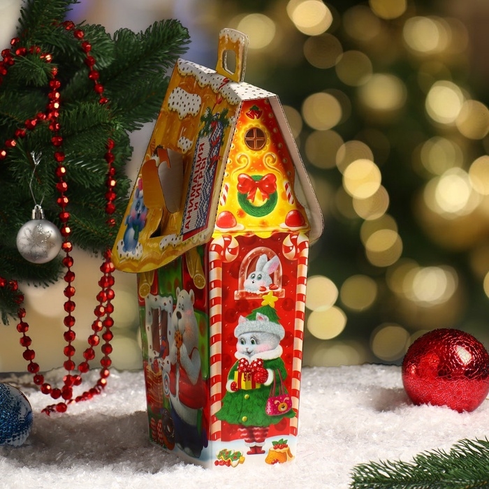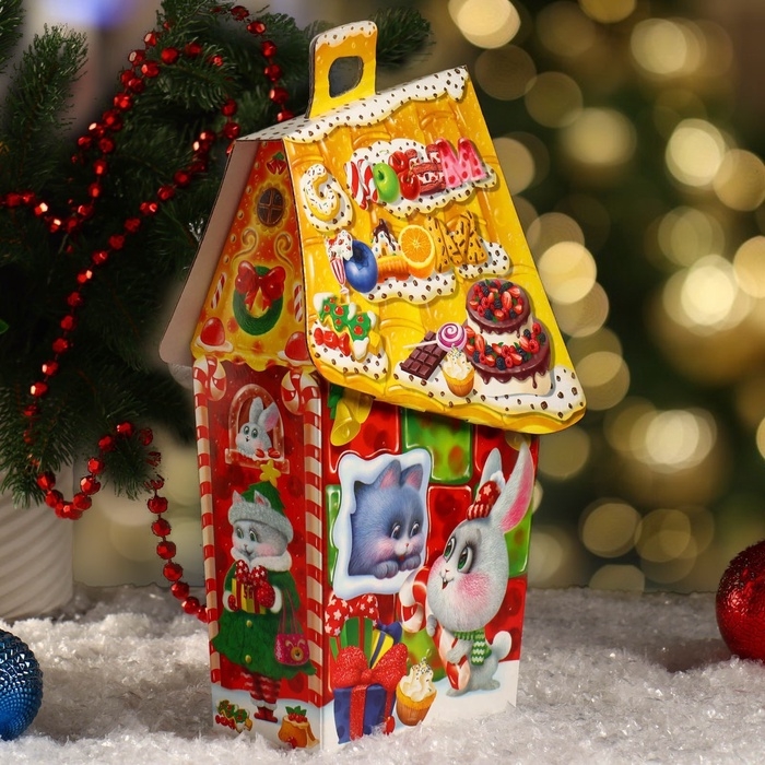 Коробка выполнена из качественных материалов, которые обеспечивают сохранность содержимого. Она имеет яркий и красочный дизайн, который отражает атмосферу Нового года.