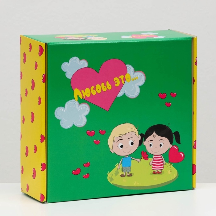Коробка самосборная "Любовь это...", зелёная, 23 х 23 х 8 см 1шт