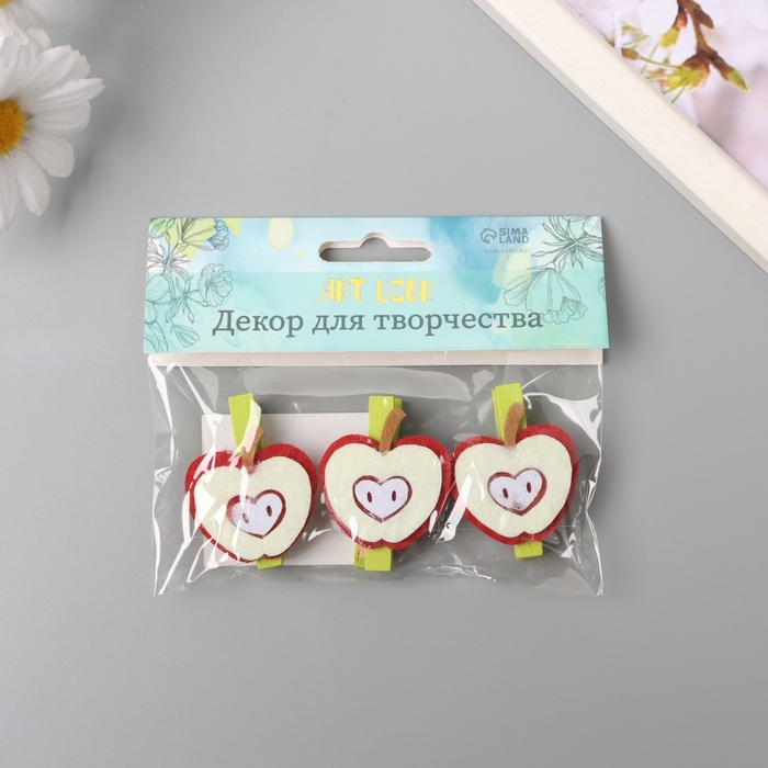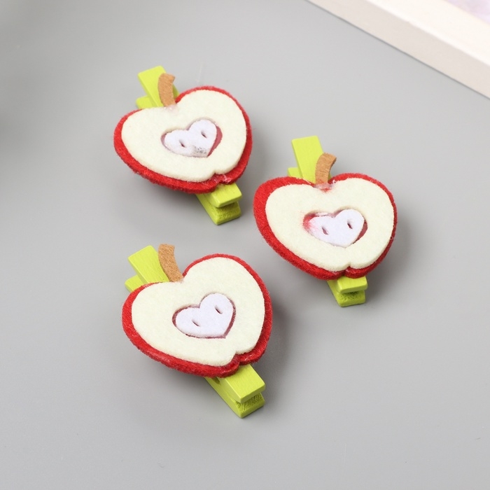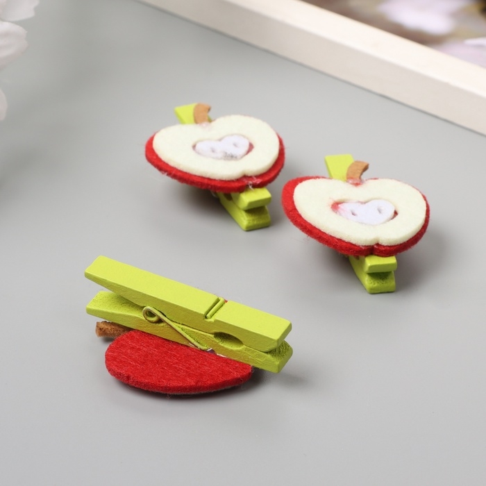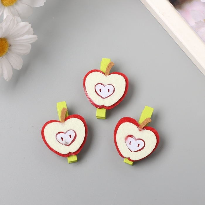 Декор для творчества дерево, фетр "Прищепка. Половинка яблока" набор 3 шт 1,3х3,5х4,8 см