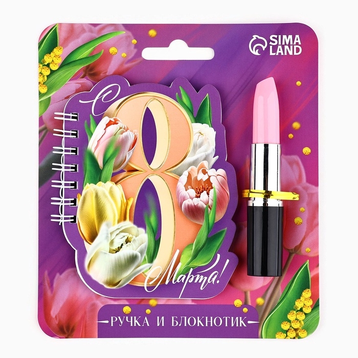 Подарочный набор "С 8 марта, тюльпаны, блокнот и ручка, 15 х 21 см
