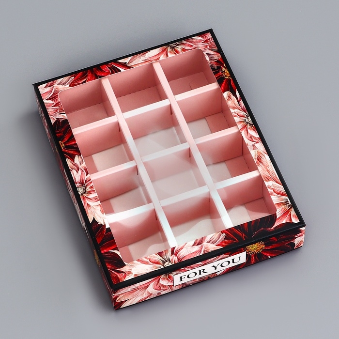 Коробка складная для 12 конфет "Презент", 19 х 15 х 3,6 см. Кондитерская упаковка