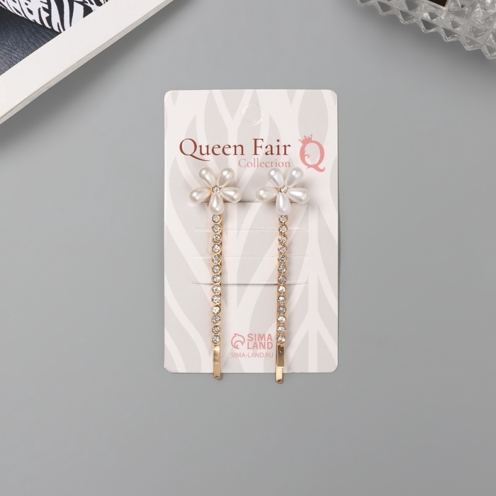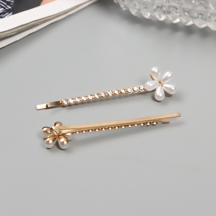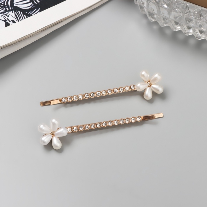 Невидимка для волос «Глория» (набор 2 шт) цветок, 6 см, золото