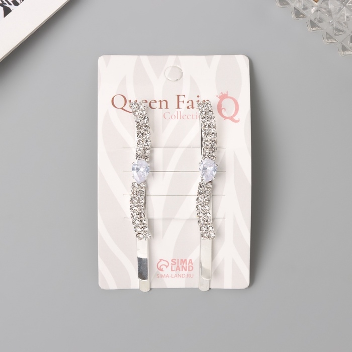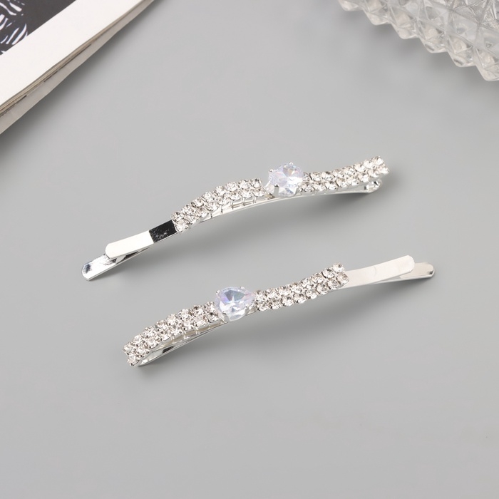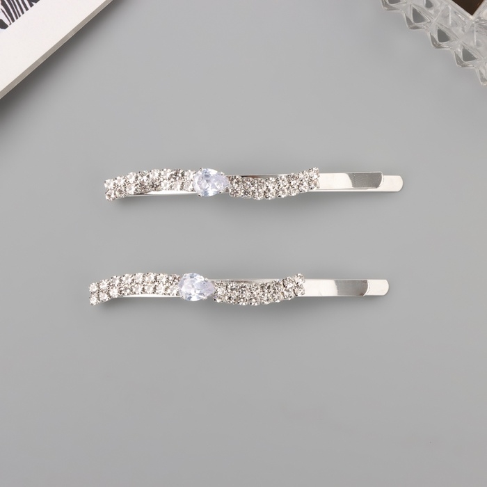 Невидимка для волос «Беат» (набор 2 шт) волна, 6 см, серебро