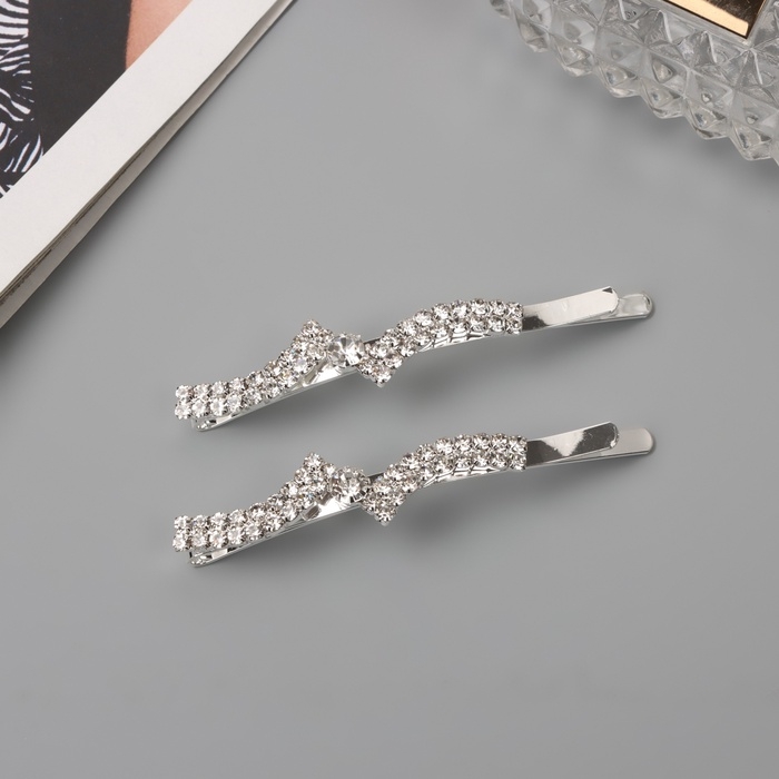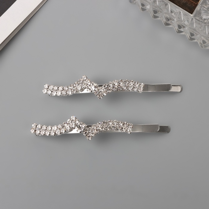 Невидимка для волос «Беат» (набор 2 шт) волна уголок, 6 см, серебро