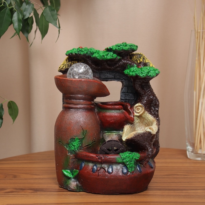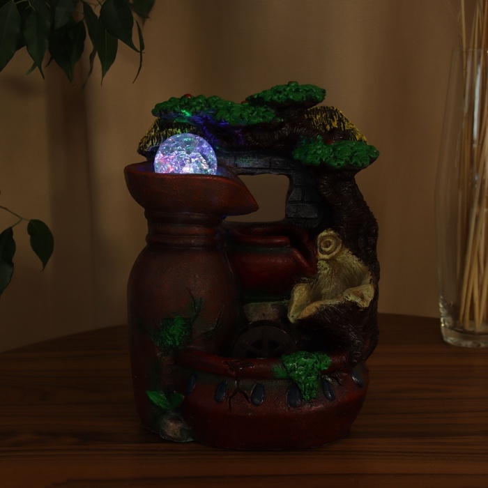 Фонтан "Каменные бочки под пышным деревом" 27х20 см (с подсветкой)