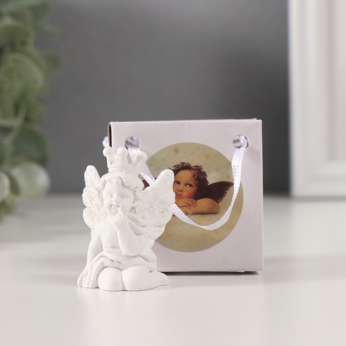 Сувенир полистоун "Ангелочек в короне" белый МИКС 3х3х5 см