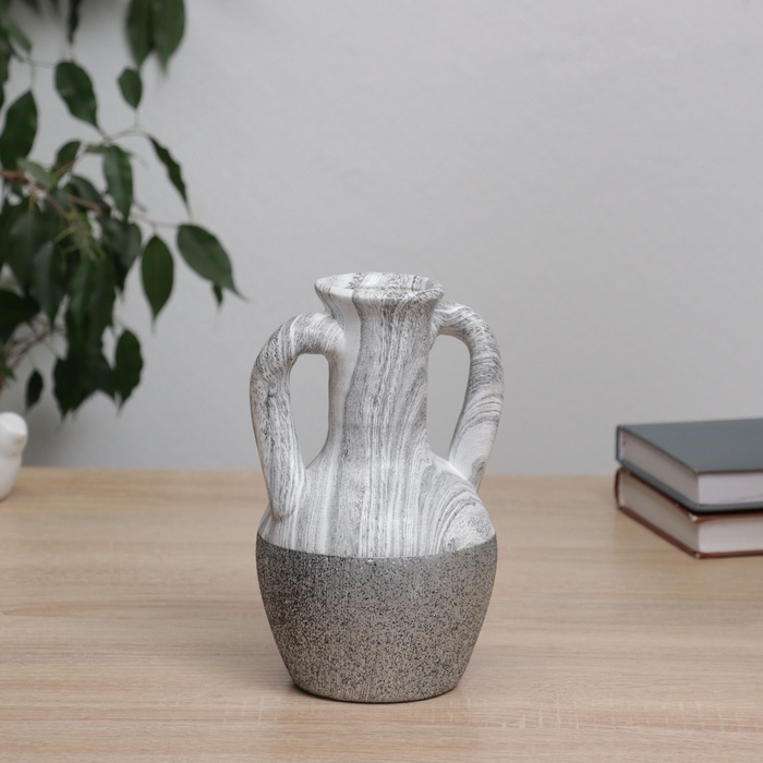 Ваза керамика настольная "Бригэм" кувшин, d-6см, h-19х12 см, бело-серый