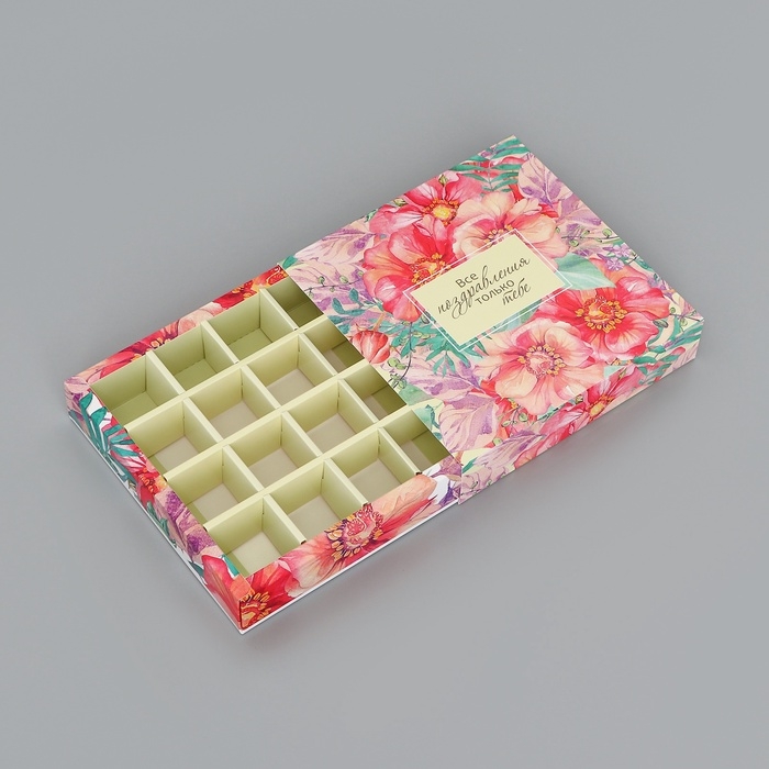 Коробка для конфет 16 шт без окна "Тебе с любовью", 17,7 х 17,7 х 3,8 см. Кондитерская упаковка