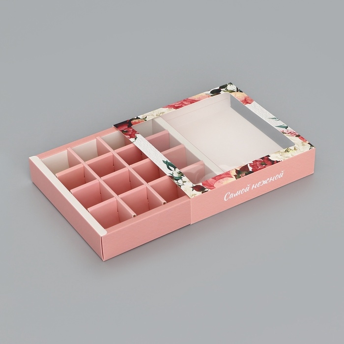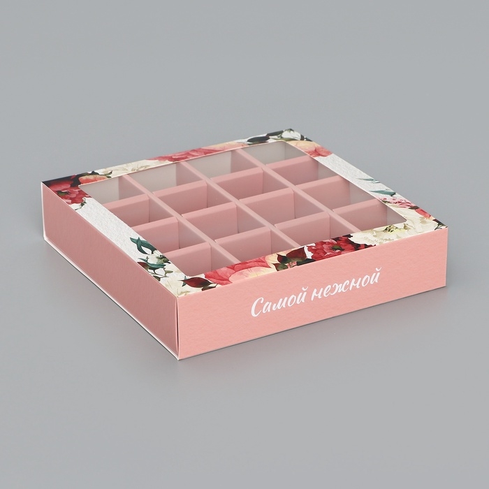Коробка для конфет 16 шт "Презент", 17,7 х 17,7 х 3,8 см. Кондитерская упаковка