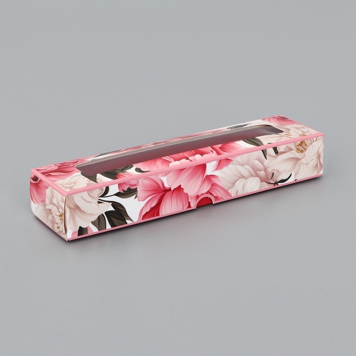 Коробка для 5 конфет с обечайкой, с окном "Презент", 21 х 5 х 3,3 см. Кондитерская упаковка