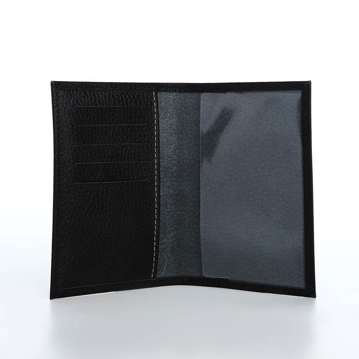 Обложка для паспорта, 5 карманов для карт, чёрный