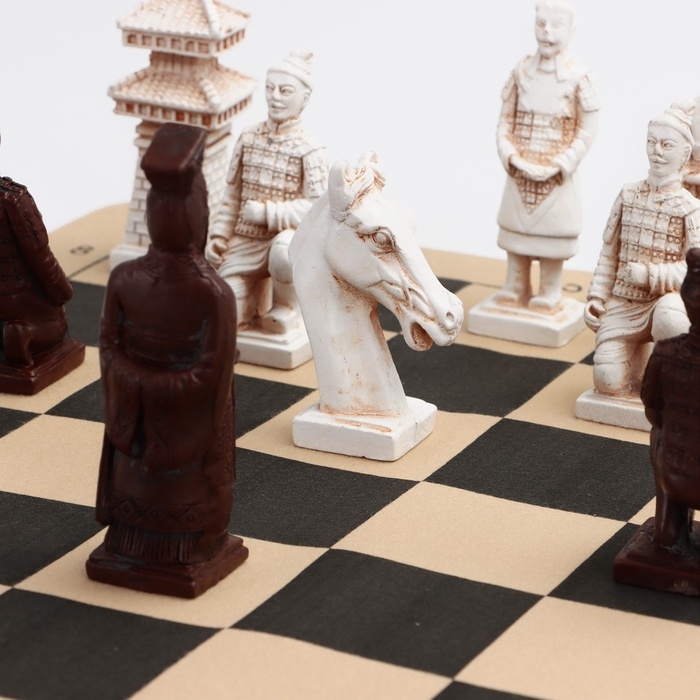 Шахматы настольные сувенирные "Терракотовое войско" 43х43 см,король h-9,5 см,пешка h-7,5 см