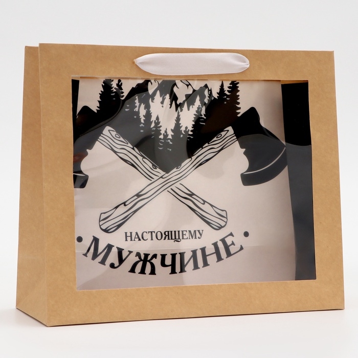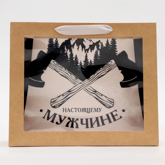 Пакет с PVC окном, "Настоящему мужчине", 31 х 11 х 26 см
