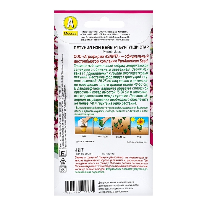 Семена цветов Петуния "Изи вейв" бургунди стар F1, ц/п, 4 шт